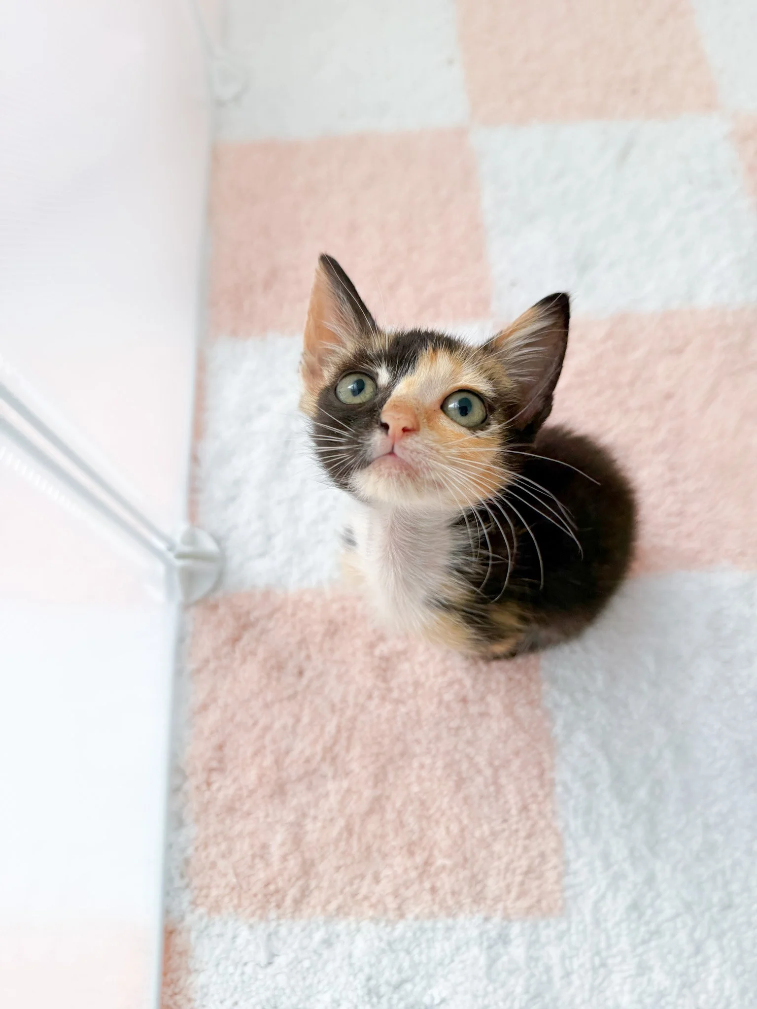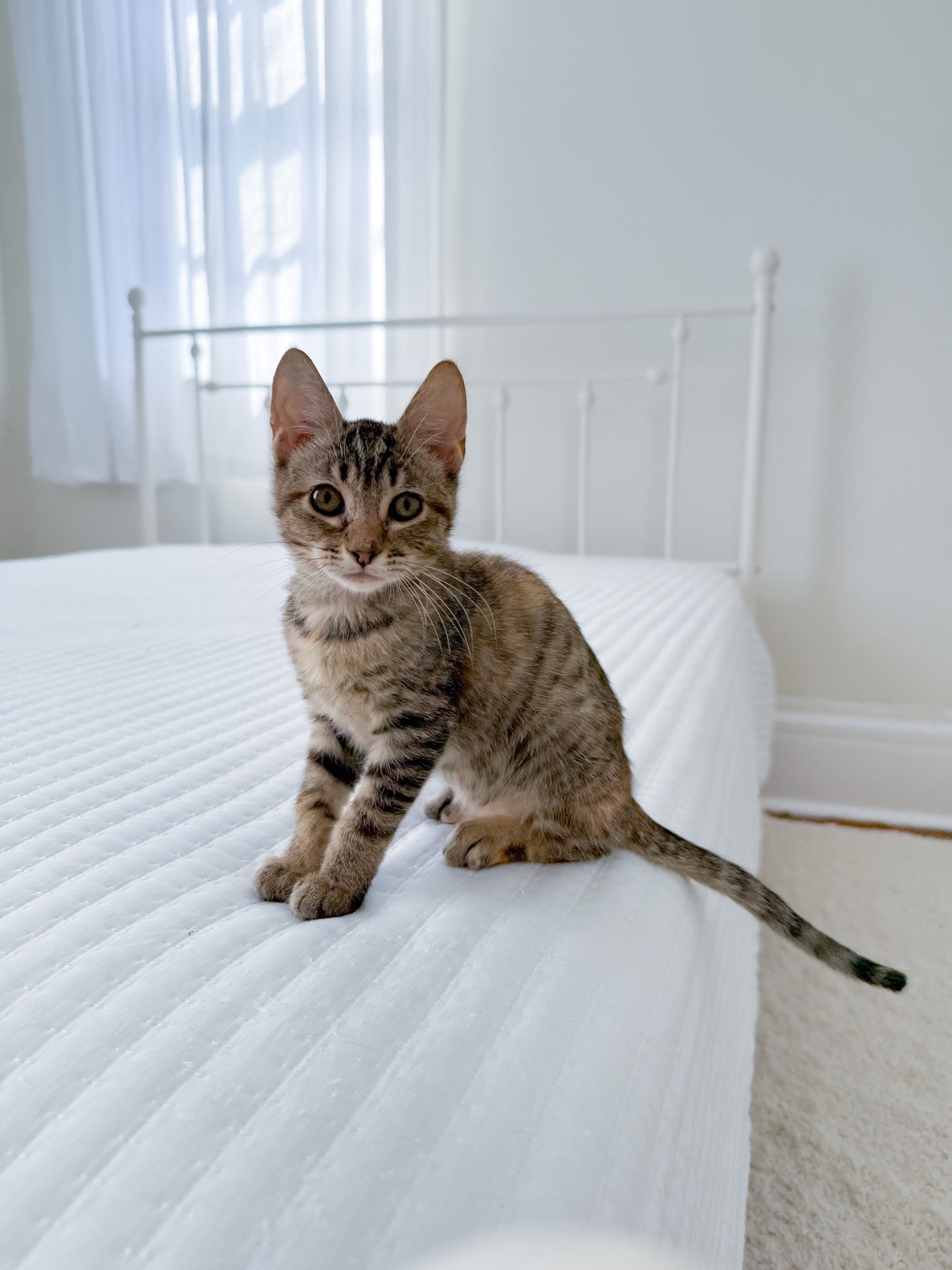 Butterscotch is a gentler soul who still has a rambunctious kitten side but mostly wants to just be where you are and see what you’re doing. She loves her foster siblings and would do well in a multi cat home and calm pup home. Butterscotch must be adopted with another kitten or into a home that already has a young, playful cat.