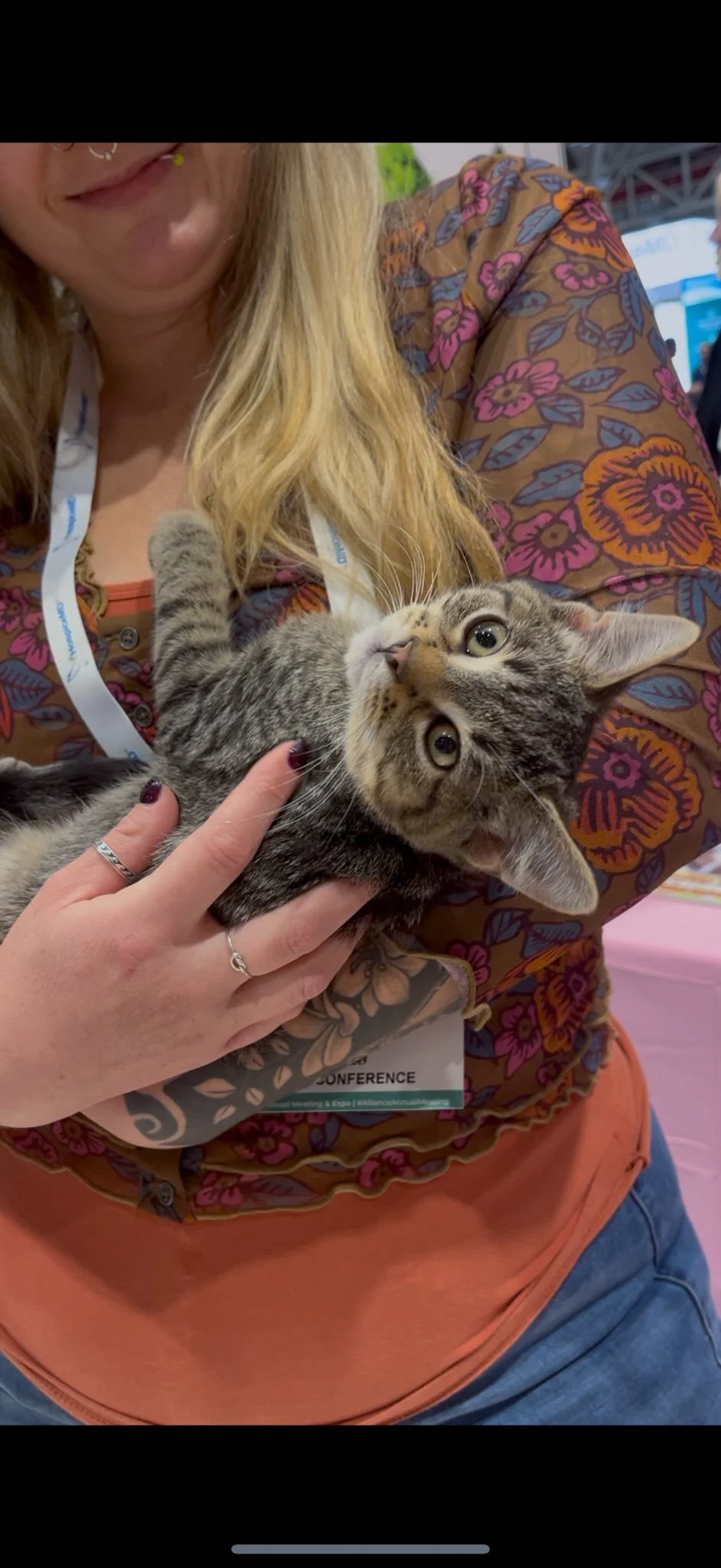 Silly, strange and more cartoon than cat, Sidecar and Patch are two of our long-timers. Sidecar is gentle, loves pets and head scratches. Patch is chatty and wants to be held, kissed, pet, snuggled, and basically attached to you. Sidecar is the perfect too cool to care but secretly cares A LOT older brother to Patch's chaoticly goofy and lovingly intrusive baby sister. Sidecar is a social butterfly and both are great with older kiddos. Patch will attach herself to her favorite person in the house and will become a little Tuxie shadow. Patch is also a fetch kitty and needs a minimum of 2 fetch sessions each week.