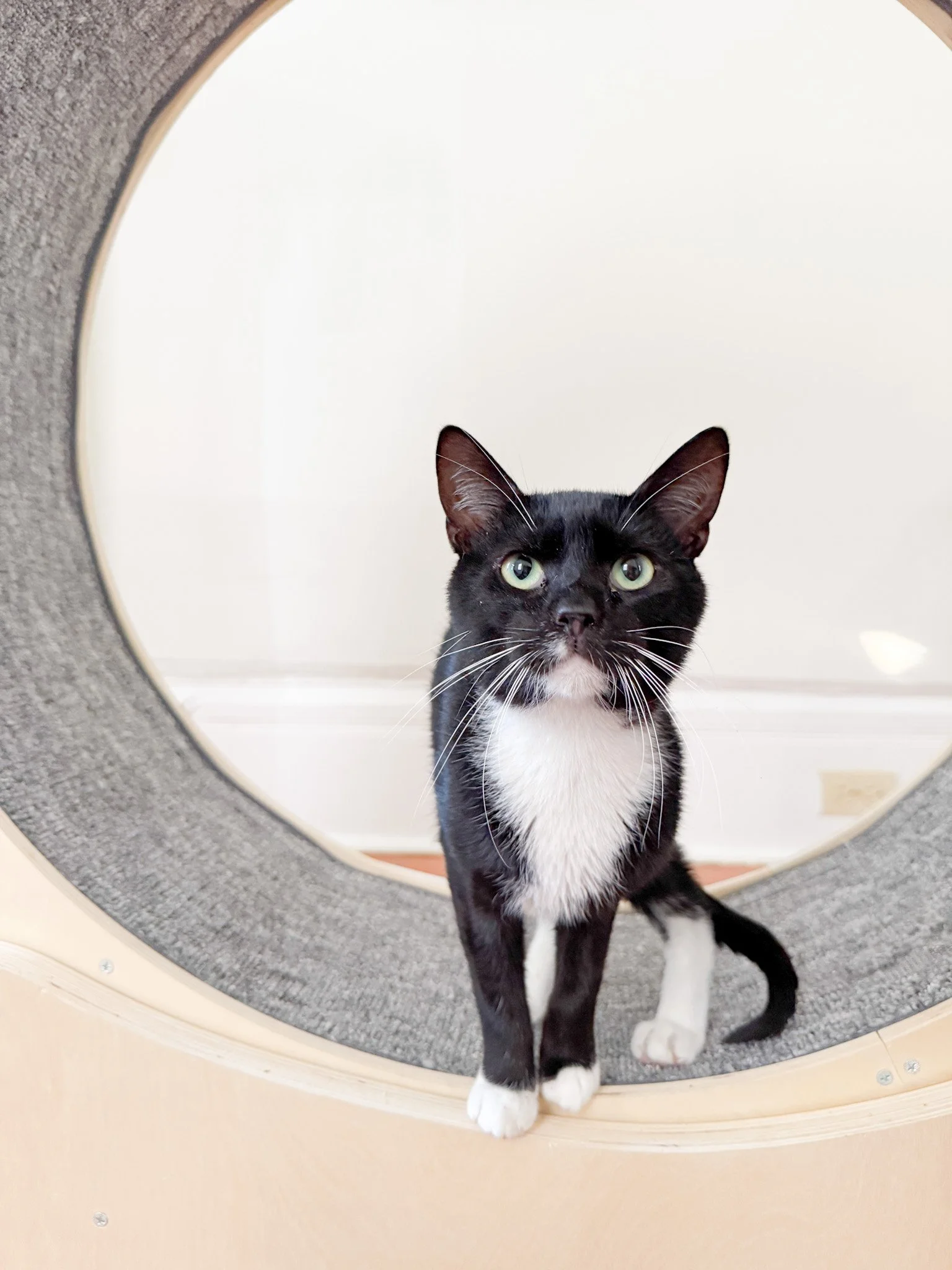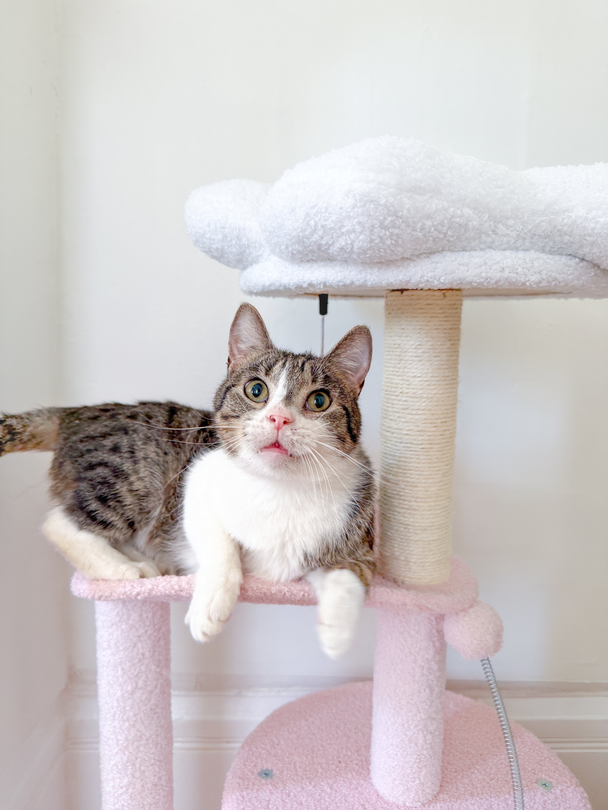 Scout is a super clinger. He needs to be your best buddy and know all the ins and outs of your day to day routine. He’s more cartoon than cat and you’ll see why pretty quickly. Scout would delight in being the only love of your life, but we could see him being open to a younger kitten companion with the right introduction. Scout would likely be okay with calm pups as well.
